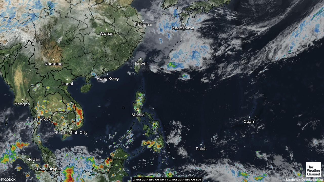 - 15:30 ภาพดาวเทียมจาก TWC แสดงกลุ่มฝนในภาคกลางและเชียงใหม่