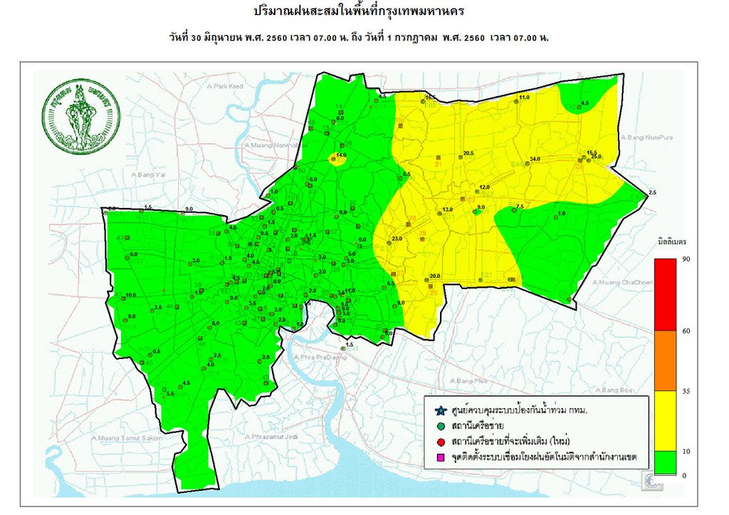 - 07:00 กราฟฟิคจากสำนักระบายน้ำ แสดงปริมาณฝนที่ตกใน กทม 24 ชม.ที่ผ่านมา