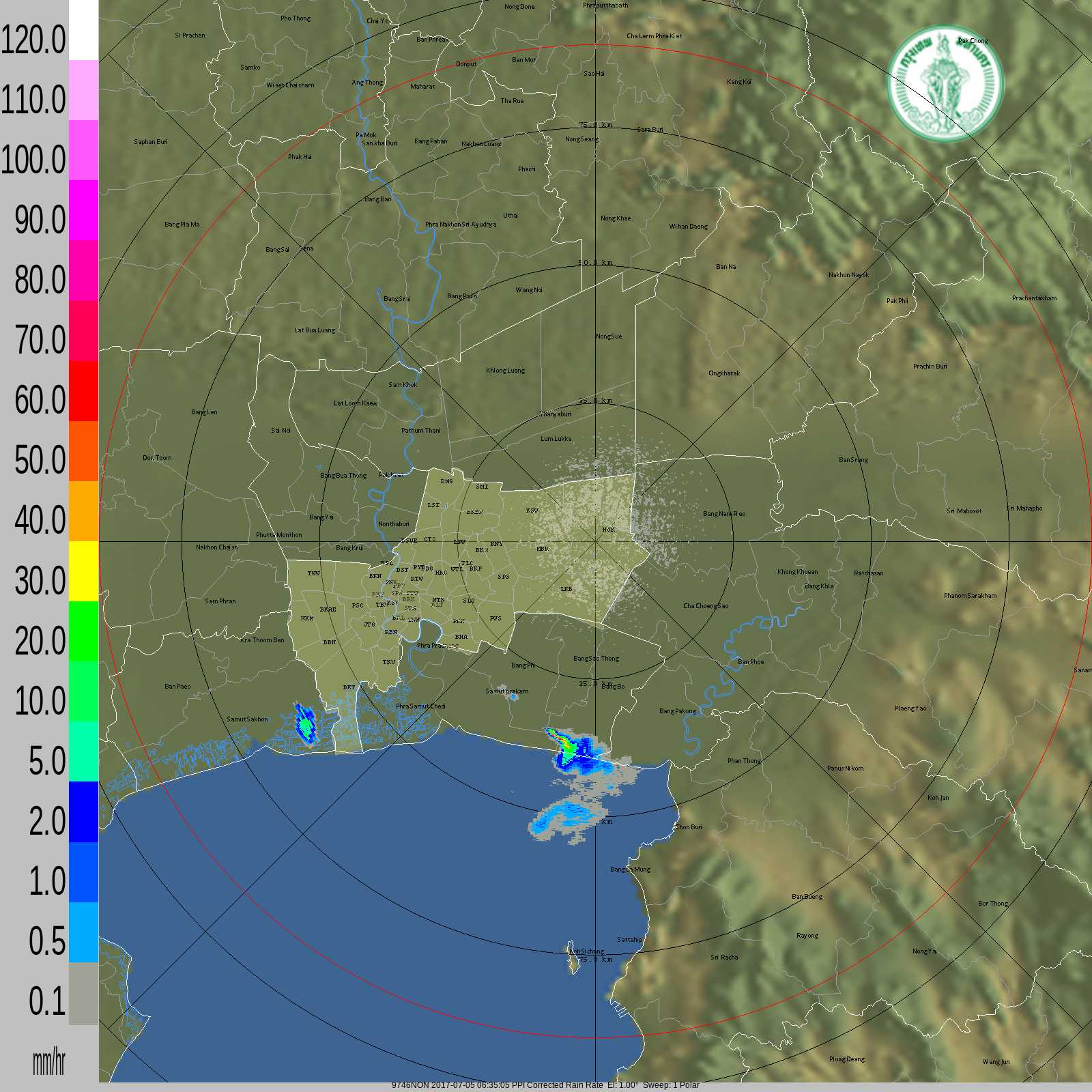 - 06:45 ฝนตกเล็กน้อย อ.เมือง จ.สมุทรสาคร เคลื่อนตัวทิศตะวันออก แนวโน้มเข้ากรุงเทพที่เขตบางขุนเทียน ดูภาพเรดาร์