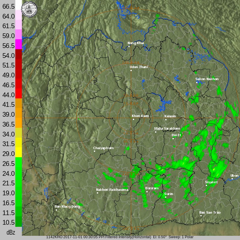 - 07:30 มีฝนตกใน จ.บุรีรัมย์ ศรีสะเกษ และหลายจังหวัดในอีสานล่าง จากหย่อมความกดอากาศต่ำ 95W ที่เคลื่อนเข้าใกล้ปลายแหลมญวณ ดูภาพเรดาร์