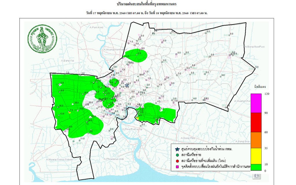 - 07:00 กราฟฟิคจากสำนักระบายน้ำ แสดงปริมาณฝนที่ตกใน กทม 24 ชม.ที่ผ่านมา