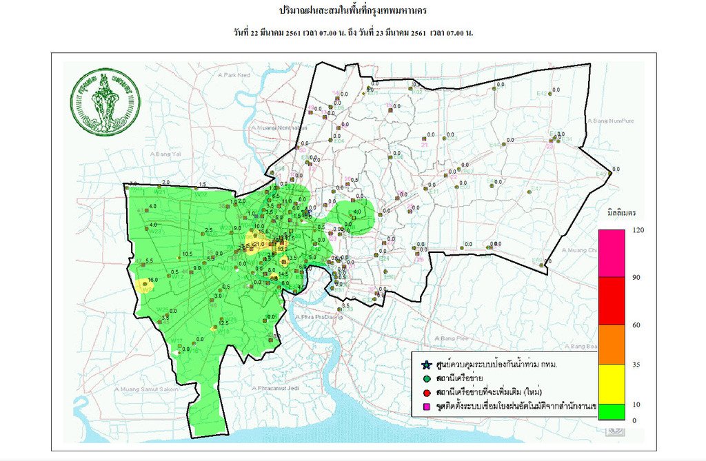 - 07:00 กราฟฟิคจากสำนักระบายน้ำ แสดงปริมาณฝนที่ตกใน กทม 24 ชม.ที่ผ่านมา