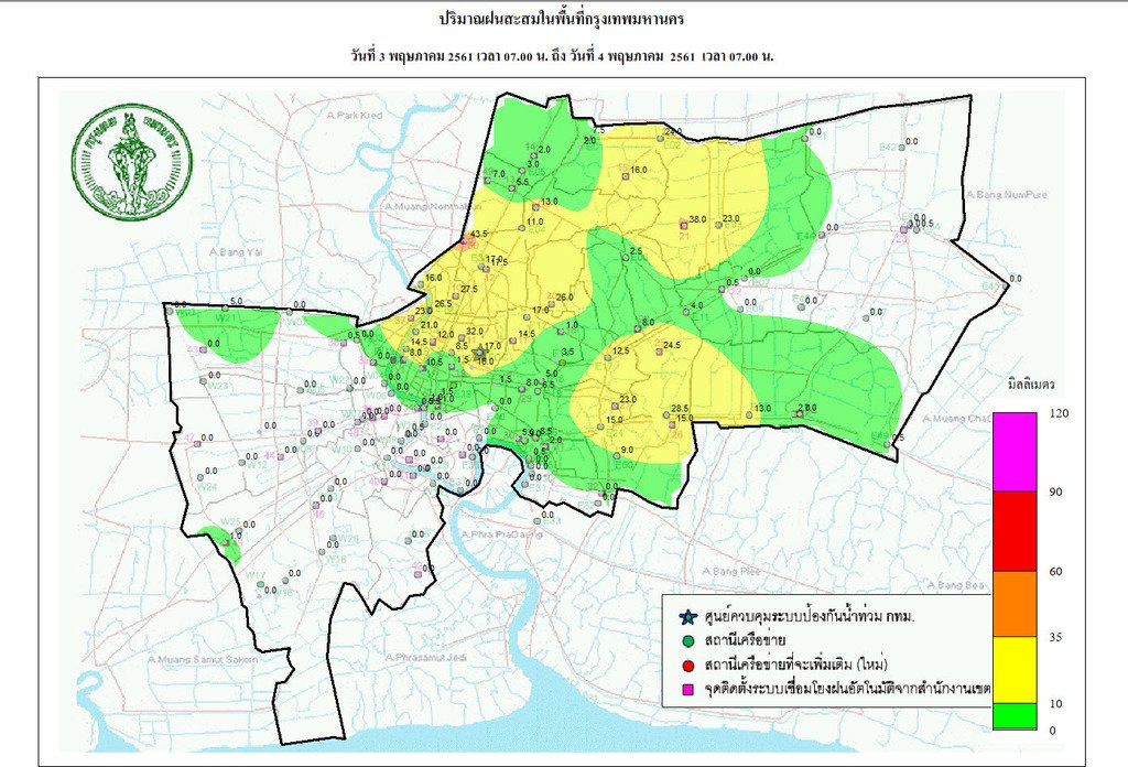 - 07:00 กราฟฟิคจากสำนักระบายน้ำ แสดงปริมาณฝนที่ตกใน กทม 24 ชม.ที่ผ่านมา