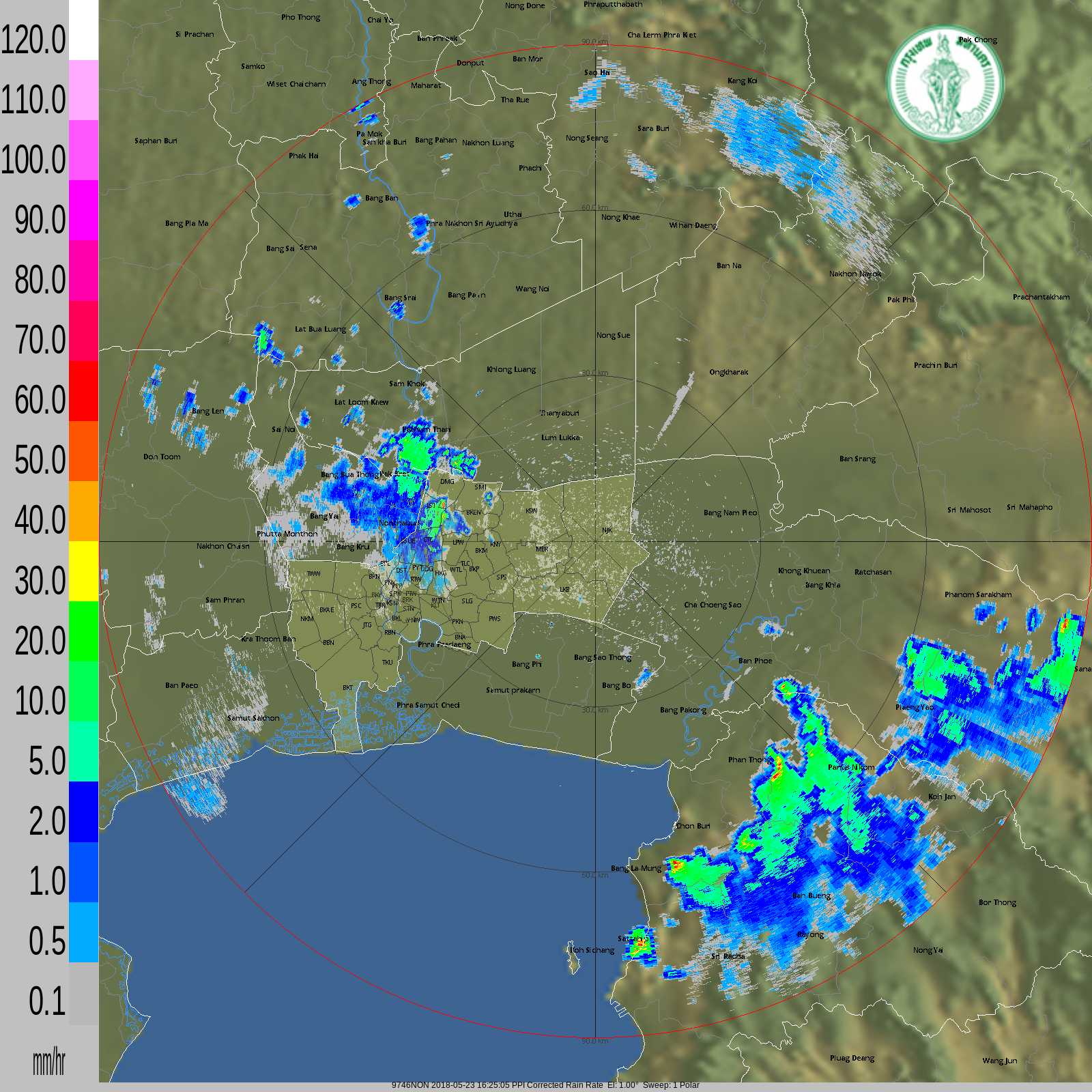 - 17:30 กทม มีเล็กน้อยเบาบางปกคลุมพื้นที่ฝั่งธนบุรีทั้งหมด ฝนเล็กน้อยถึงปานกลางเขตหนองจอก คลองสามวา ดอนเมือง สายไหม หลักสี่