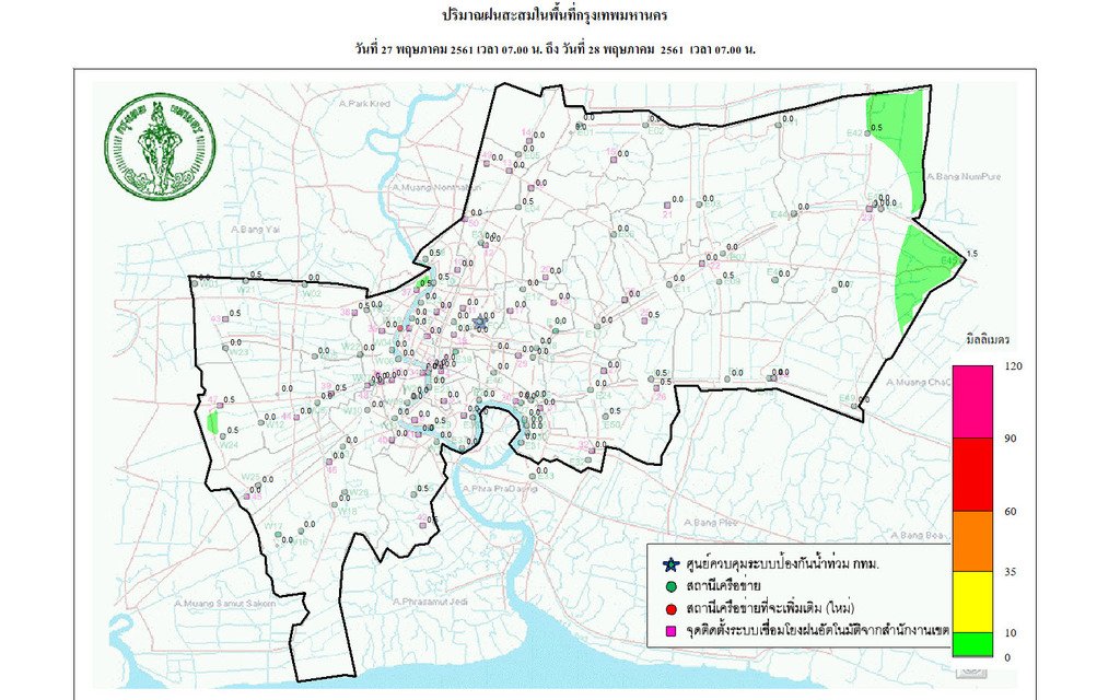- 07:00 กราฟฟิคจากสำนักระบายน้ำ แสดงปริมาณฝนที่ตกใน กทม 24 ชม.ที่ผ่านมา