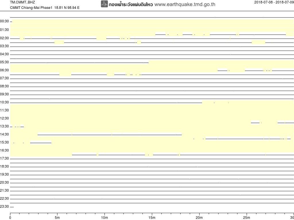 - กราฟแผ่นดินไหวจากสถานี CMMT จ.เชียงใหม่ ของสำนักเฝ้าระวังฯ กรมอุตุฯ จากเวลา 07:00 เมื่อวานนี้ถึง 07:00 เช้านี้