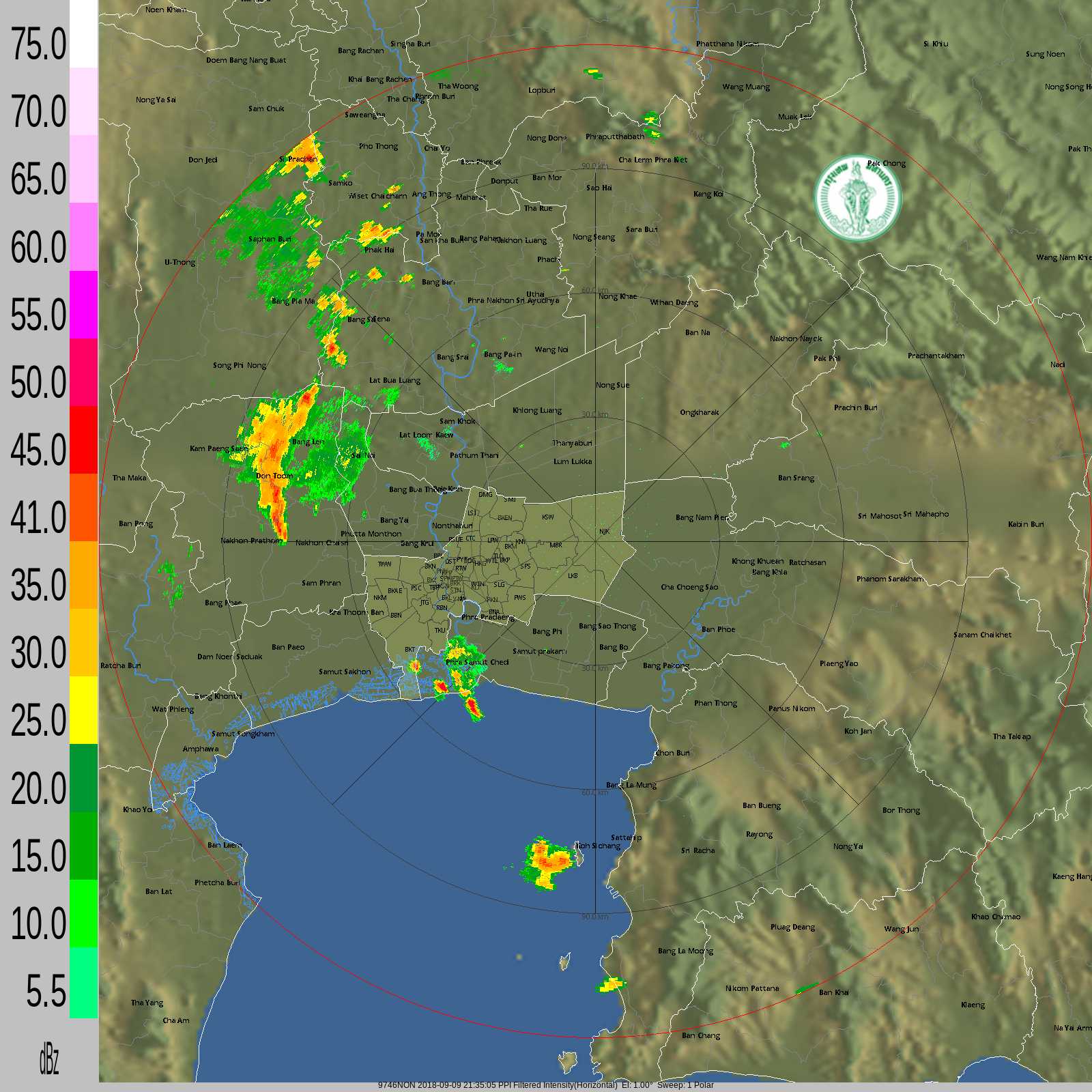 - 21:30 กทม.มีฝนเล็กน้อย-ถึงปานกลาง เขตบางขุนเทียน ต่อเนื่อง อ.พระสมุทรเจดีย์ จ.สมุทรปราการ ดูภาพเรดาร์