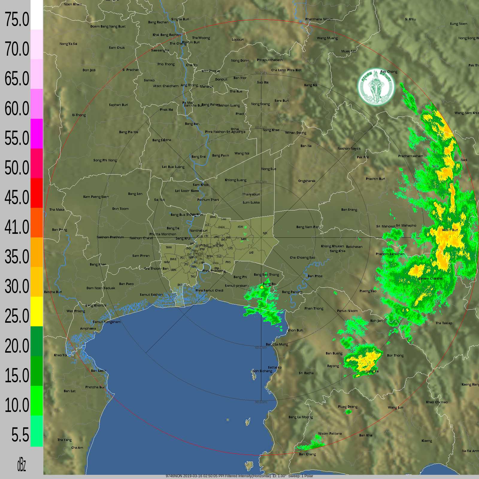 - 02:30 กทม.มีฝนเล็กน้อยเขตหนองจอก และฝนเล็กน้อยถึงปานกลาง อ.บางเสาธง อ.บางบ่อ อ.บางปะกง เคลื่อนทิศตะวันตก แนวโน้มคงที่ ดูภาพเรดาร์