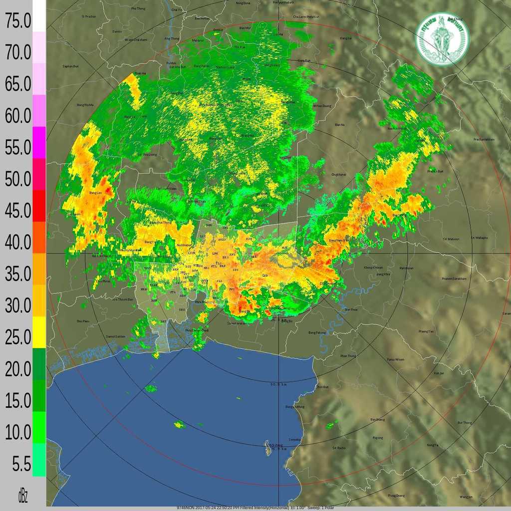 - 05:00 ฝนตกเล็กน้อย กทม เขตวังทองหลาง บางกะปิ พระโขนง บางนา ทุ่งครุ บางขุนเทียน ดูภาพเรดาร์