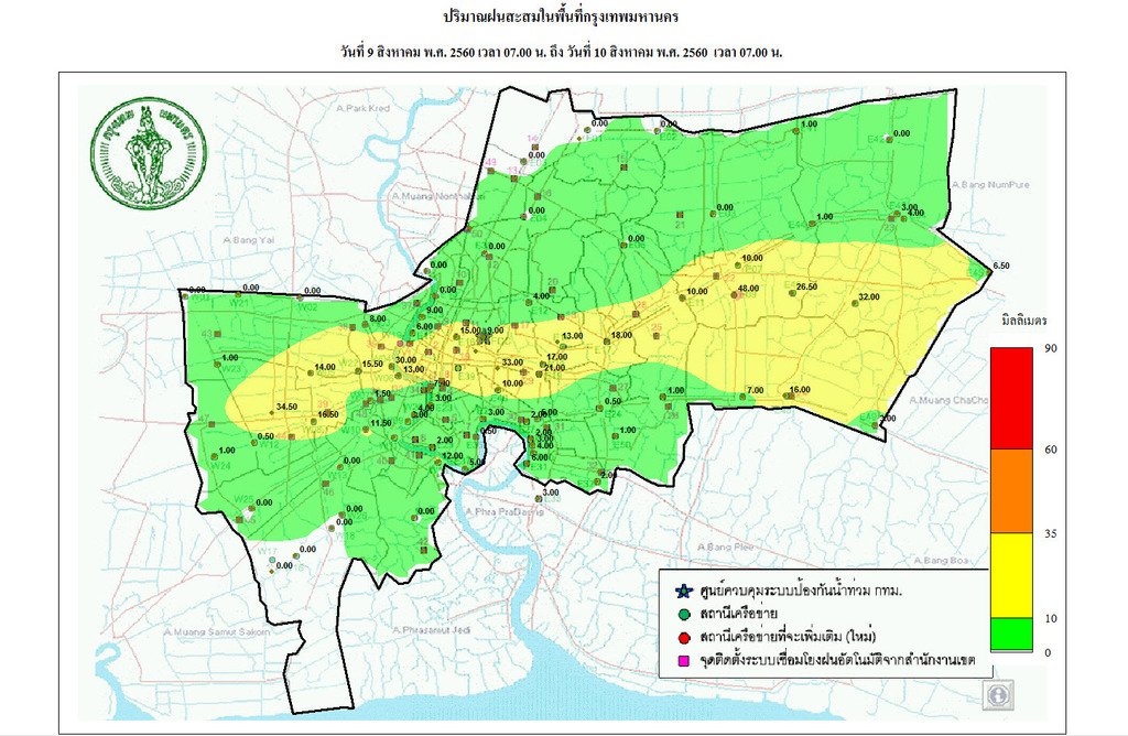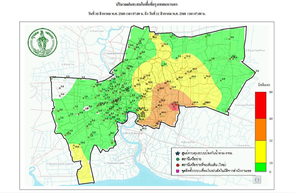 - 06:00 กรุงเทพฯมีฝนเล็กน้อยเขตธนบุรี คลองสาน จอมทอง บางคอแหลม ราษฎร์บูรณะ ยานนาวา