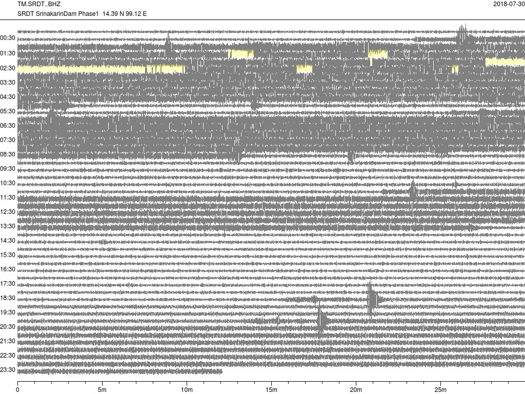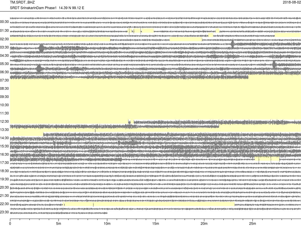 - กราฟแผ่นดินไหวจากสถานี นครนายก ของสำนักเฝ้าระวังฯ กรมอุตุฯ จากเวลา 07:00 เมื่อวานนี้ถึง 07:00 เช้านี้