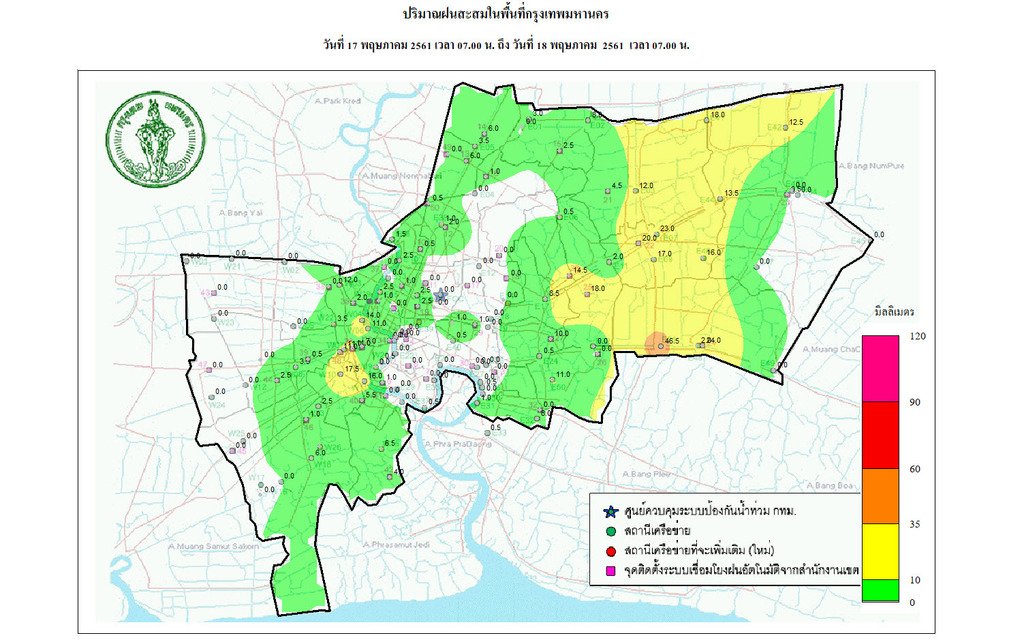 - 07:00 กราฟฟิคจากสำนักระบายน้ำ แสดงปริมาณฝนที่ตกใน กทม 24 ชม.ที่ผ่านมา