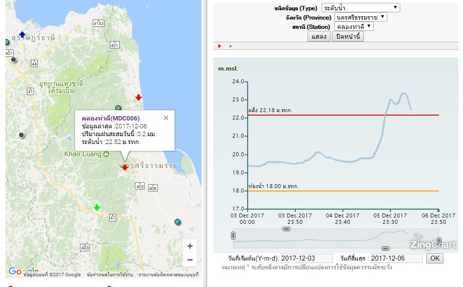 - สถานการณ์น้ำท่วมใต้ – ปัจจุบันยังมีน้ำท่วมที่ อ.พุนพิน จ.สุราษฏร์ และ อ.ชะอวด อ.เชียรใหญ่ อ.หัวไทร จ.นครศรีฯ