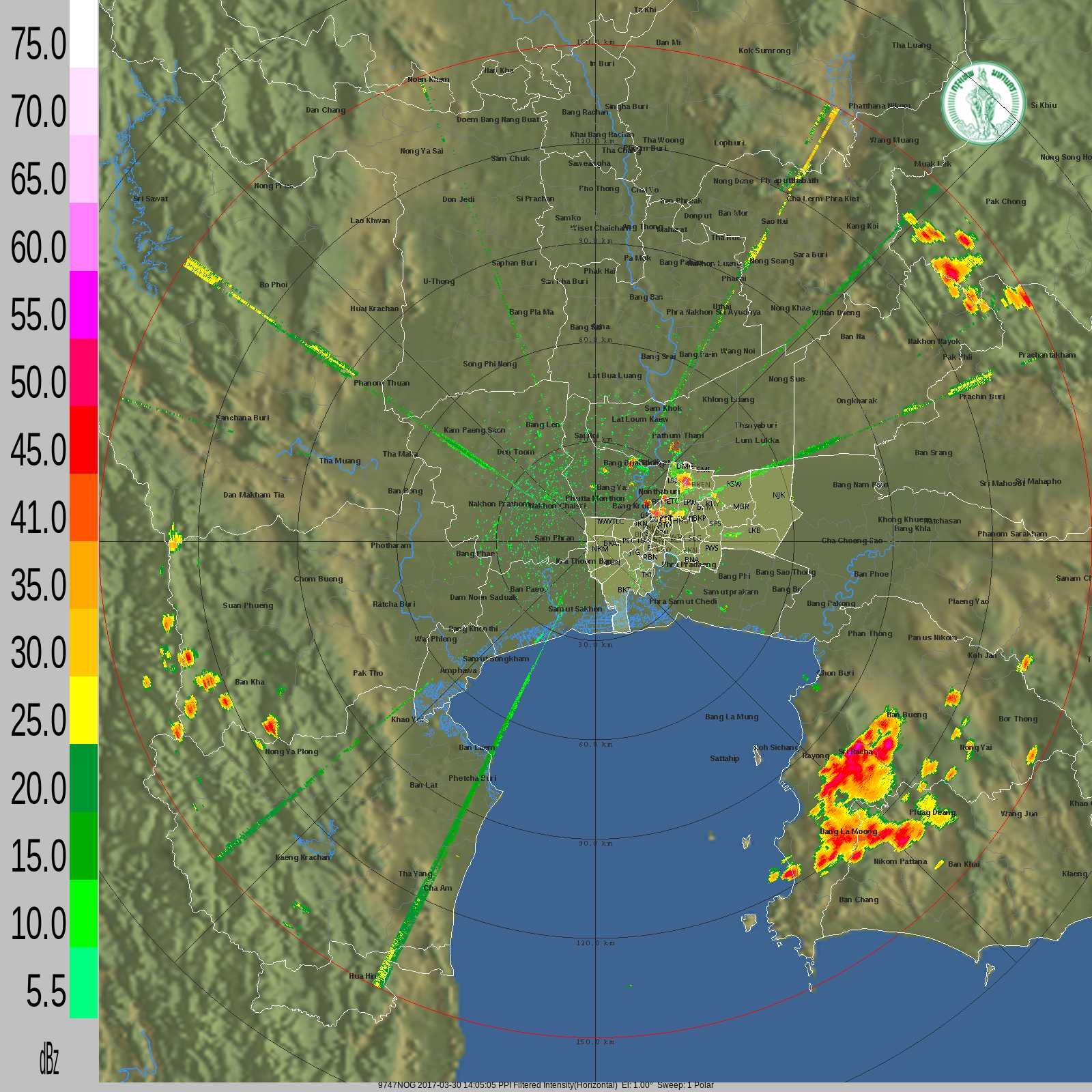 - 14:05 เรดา์สำนักระบายน้ำฯ แสดงให้เห็นลักษณะกลุ่มฝนใน กทม และชลบุรีเวลานี้