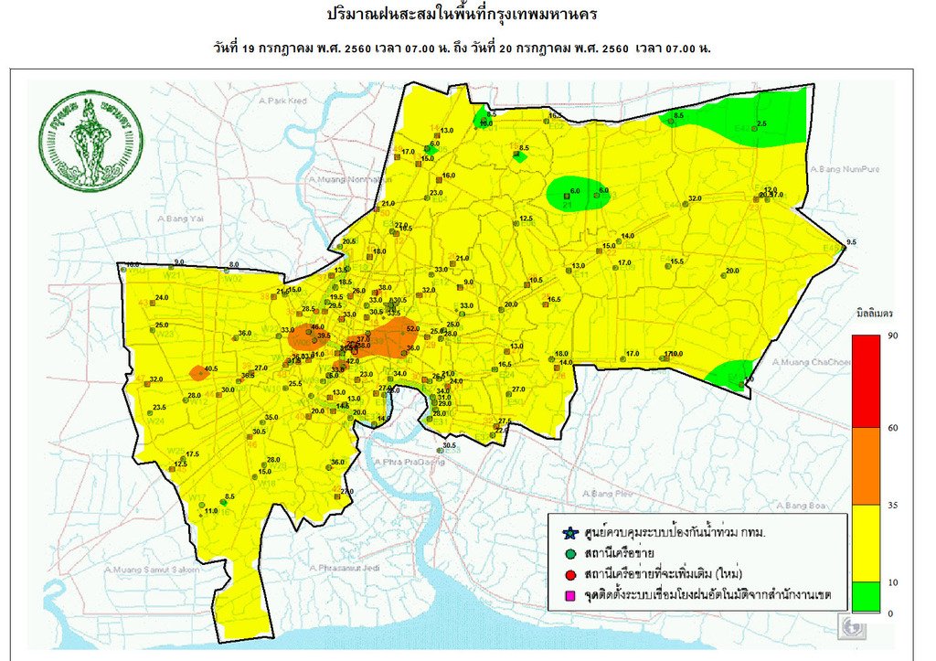 - 07:00 กราฟฟิคจากสำนักระบายน้ำ แสดงปริมาณฝนที่ตกใน กทม 24 ชม.ที่ผ่านมา