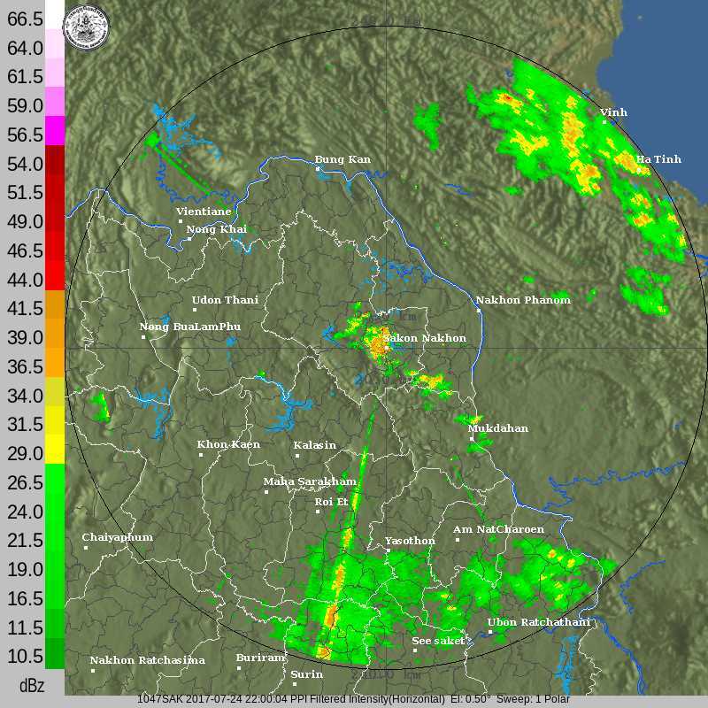 - 07:00 แผนที่แสดงปริมาณฝนในประเทศไทยย้อนหลัง 24 ชั่วโมง (07:00 วานนี้้ถึง 07:00 วันนี้) จากกรมอุตุฯ