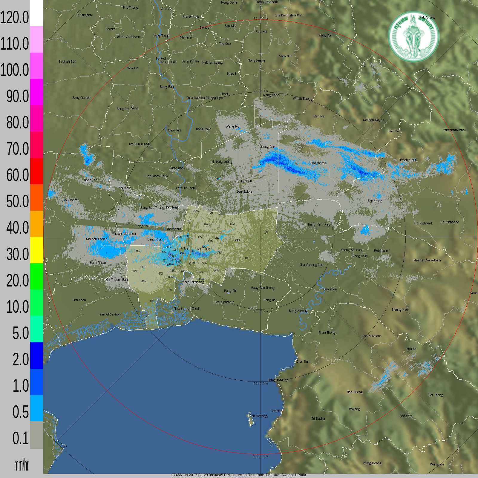 - 20:00 กทม มีฝนปานกลางพื้นที่ฝั่งธนบุรี เคลื่อนเข้าพื้นที่ฝั่งพระนครชั้นใน และฝนเล็กน้อยเขตคลองเตย พระโขนง บางนา
