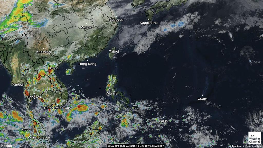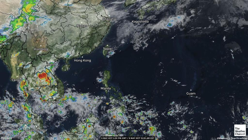 - 05:00 หย่อมความกดอากาศต่ำ ที่หลงเหลือจากการสลายตัวของพายุดีเปรสชัน 18W ในอีสานล่าง เคลื่อนตัวเข้าหาภาคกลางและภาคตะวันออก ฝนตกเป็นวงกว้างในหลายจังหวัดรวมทั้ง กทม ตั้งแต่เมื่อคืนถึงขณะนี้ ถนนหลายสายในหลายจังหวัด เช่นโคราช เริ่มมีรายงานน้ำท่วมขัง บางแห่งรถเล็กผ่านไม่ได้