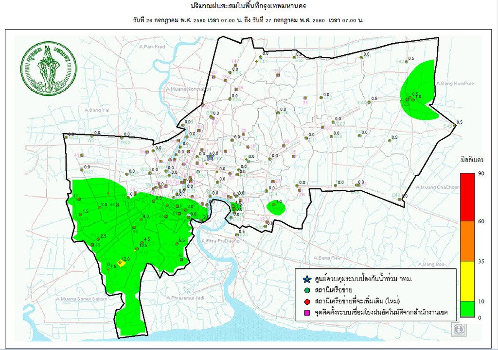 - 07:00 กราฟฟิคจากสำนักระบายน้ำ แสดงปริมาณฝนที่ตกใน กทม 24 ชม.ที่ผ่านมา