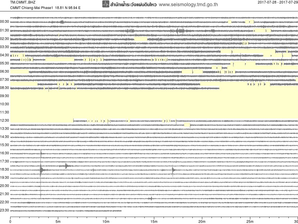 • กราฟแผ่นดินไหวจากสถานี จ.เชียงใหม่ CMMT ของกรมอุตุจากเวลา 07:00 เมื่อวานนี้ถึง 07:00 เช้านี้DF3CsASXUAA1Bx2