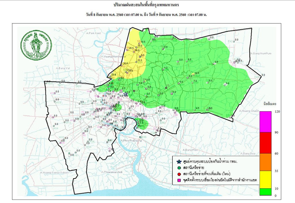 - 07:00 กราฟฟิคจากสำนักระบายน้ำ แสดงปริมาณฝนที่ตกใน กทม 24 ชม.ที่ผ่านมา