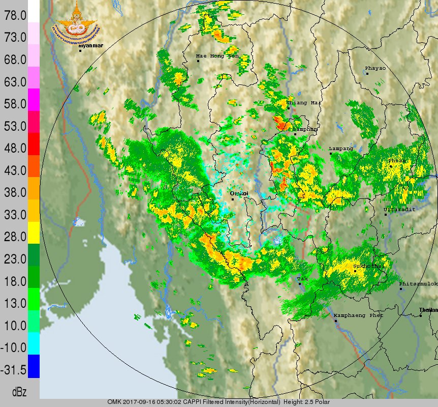 - 18:45 มีกลุ่มฝนเคลื่อนจากตะวันออกเฉียงเหนือเข้ามาตกใน จ.สุโขทัย ต่อเนื่อง จ.ตาก ดูภาพเรดาร์