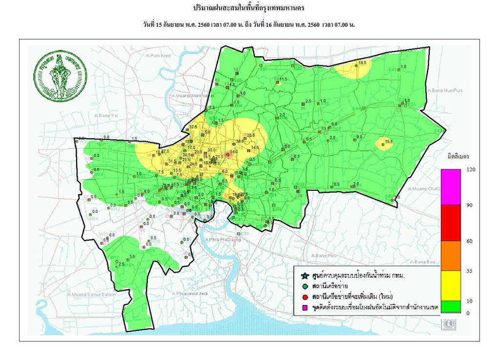 - 07:00 กราฟฟิคจากสำนักระบายน้ำ แสดงปริมาณฝนที่ตกใน กทม 24 ชม.ที่ผ่านมา