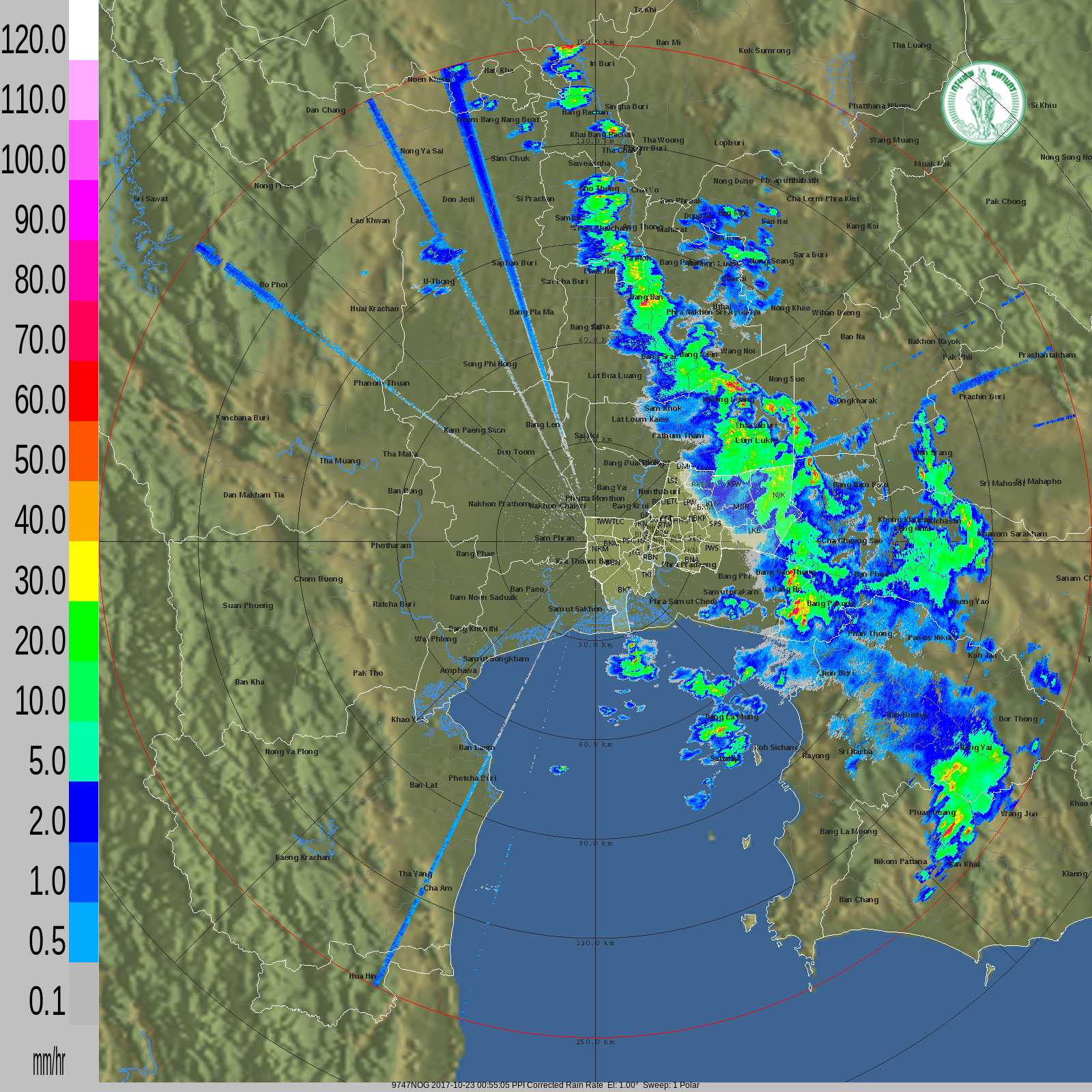 - 13:00 ศูนย์กลางหย่อมความกดอากาศต่ำ 96W ความเร็วลม 15 น็อต ความกดอากาศ 1010 hPa เวลานี้อยู่ที่พิกัด 4.9°N 137.8°E ทางตะวันออกของเกาะปาเลา