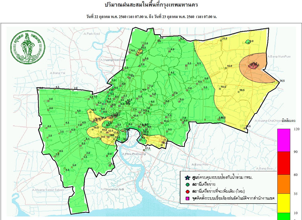 - 07:00 กราฟฟิคจากสำนักระบายน้ำ แสดงปริมาณฝนที่ตกใน กทม 24 ชม.ที่ผ่านมา