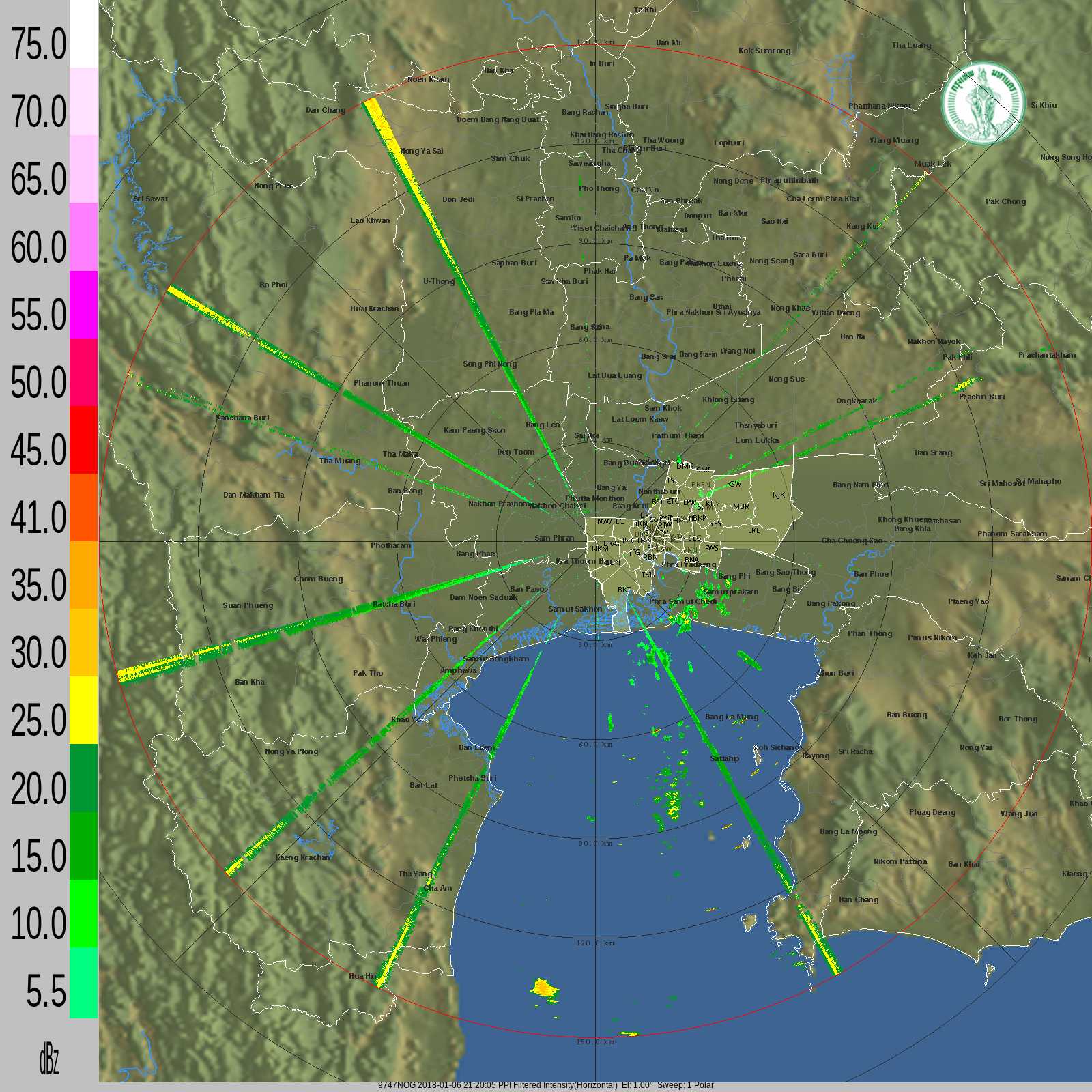 - 13:00 กทม.มีฝนเล็กน้อยถึงปานกลางเขตบางขุนเทียน ฝนเล็กน้อยเขตสะพานสูง ประเวศ วัฒนา คลองเตย จอมทอง รอบนอก อ.พระประแดง อ.เมืองสมุทรปราการ เคลื่อนตัวทิศตะวันตก