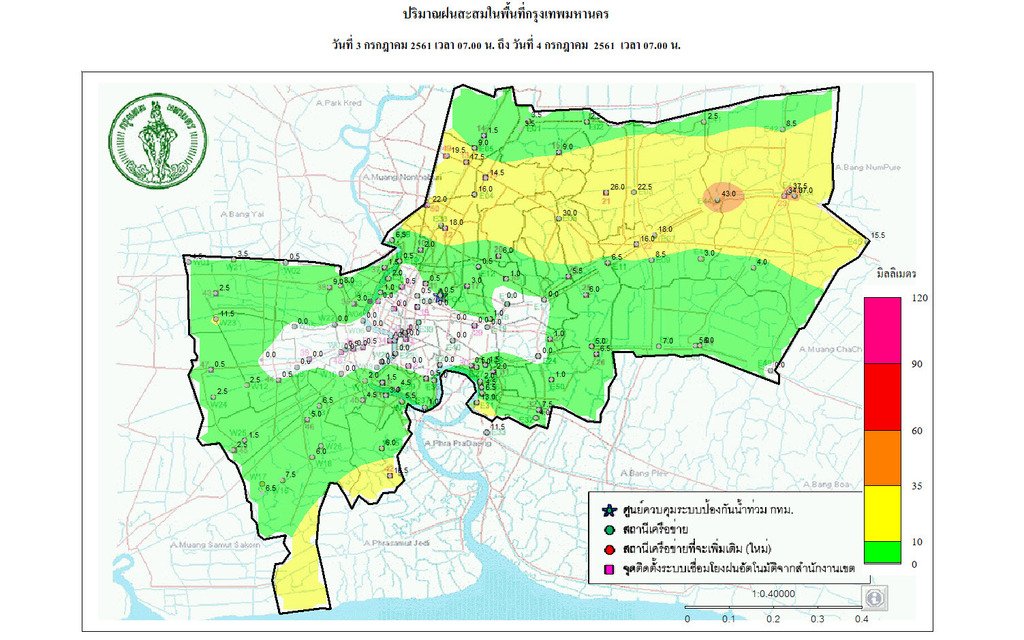 - 07:00 กราฟฟิคจากสำนักระบายน้ำ แสดงปริมาณฝนที่ตกใน กทม 24 ชม.ที่ผ่านมา