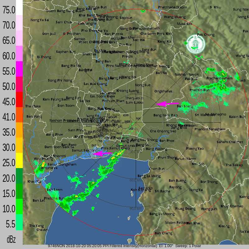 - .17:00 พื้นที่กรุงเทพมหานครฝนปานกลางเขตหนองจอก /รอบนอกฝนเล็กน้อยถึงปานกลาง จ.นนทบุรี จ.นครปฐม