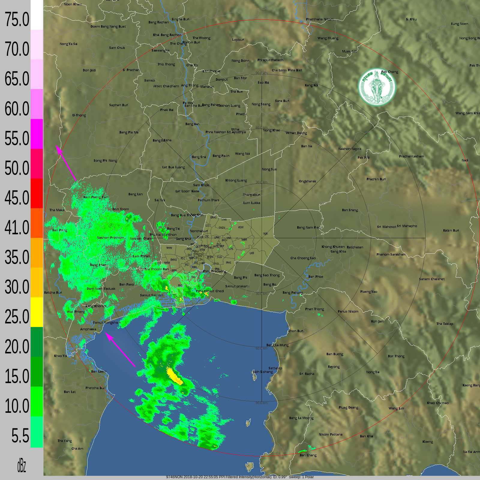 - 16:00 หย่อมความกดอากาศต่ำกำลังปานกลางค่อนข้างแรง กำลังเคลื่อนไปทางภาคใต้ ส่งผลให้มีฝนหนักในหลายจังหวัดตั้งแต่ประจวบฯลงไปในวันพรุ่งนี้ (25 ต.ค.)