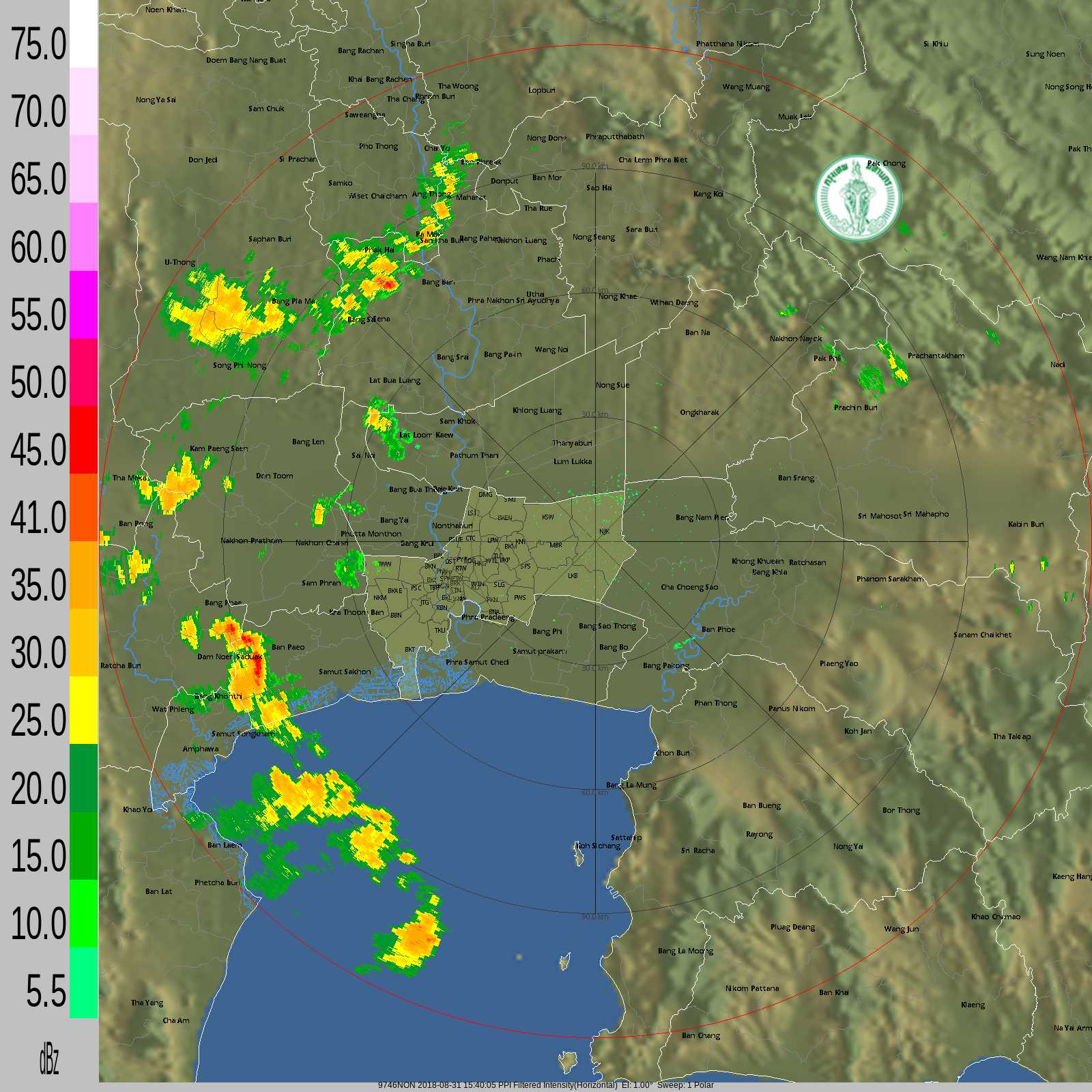 - 19:30 ฝนเล็กน้อยถึงปานกลางทั่วทั้งพื้นที่ กทม. ฝนหนักใน จ.สระบุรี