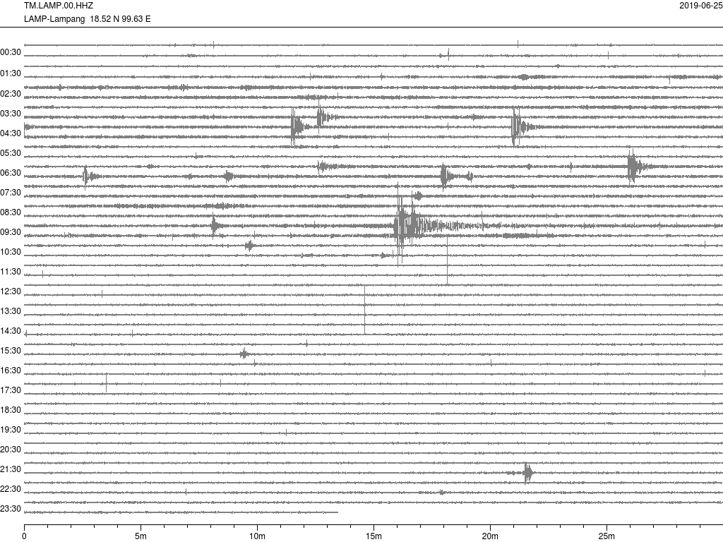 • กราฟแผ่นดินไหวจากสถานีเขื่อนกิ่วลม จ.ลำปาง (LAMP)