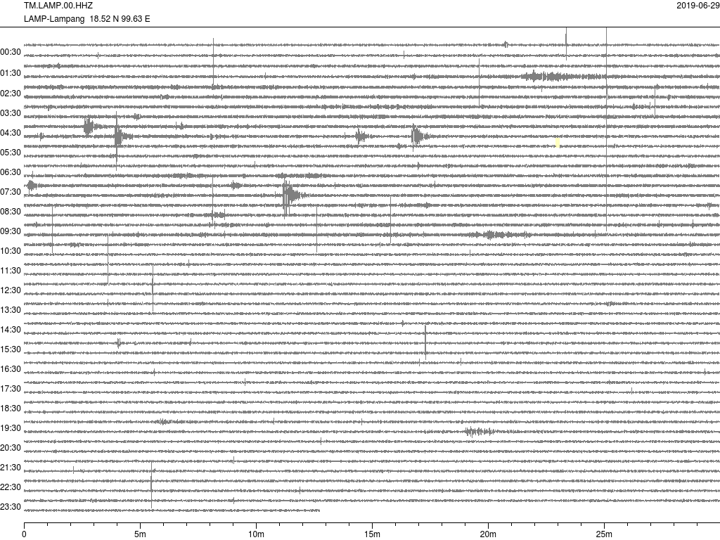 - คลื่นแผ่นดินไหวจากสถานี CMMT เชียงใหม่ของกรมอุตุจากเวลา 07:00 เมื่อวานนี้ถึง 07:00 เช้านี้
