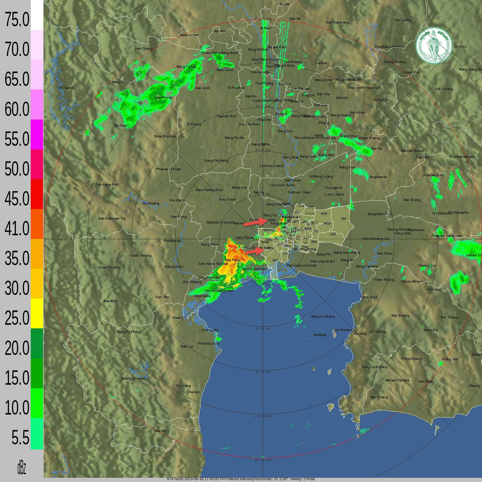 - 05:10 ฝนตกสมุทรปราการ บางพลี กลุ่มฝนเคลื่อนตัวไปทางประเวศ