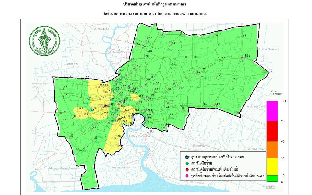 - 07:00 กราฟฟิคจากสำนักระบายน้ำ แสดงปริมาณฝนที่ตกใน กทม 24 ชม.ที่ผ่านมา