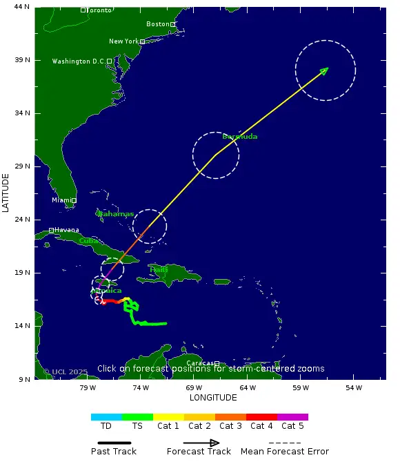 - 10:00 พายุเฮอริเคน MELISSA ในทะเลแคริบเบียน ทวีความเร็วลมขึ้นเป็นระดับ 4 กำลังจะกลายเป็นซูเปอร์เฮอริเคน พิกัดล่าสุด 16.3°N77.5°W แนวโน้มเคลื่อนตัวขึ้นฝั่งประเทศจาไมก้าภายในคืนนี้ จากนั้นจะเคลื่อนตัวขึ้นฝั่งคิวบา แล้วลงสู่มหาสมุทรแอตแลนติกต่อไป