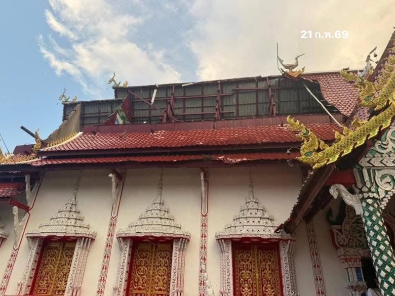 - 18:00 วัดท่ามะเกี่ยง ต.สันทราย อ.พร้าว จ.เชียงใหม่ โดนพายุฤดูร้อน