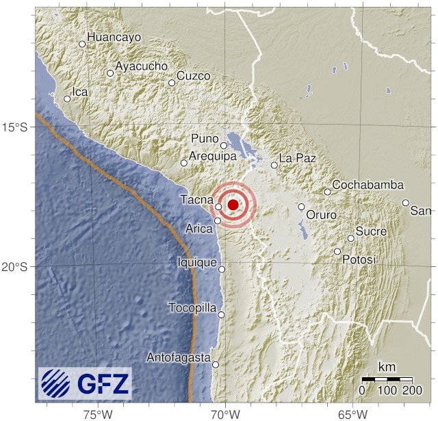 - 01:19 แผ่นดินไหวขนาด 4.6 (mb) ลึก 134 กม.พิกัด 69.70°W 17.93°S ประเทศชิลี