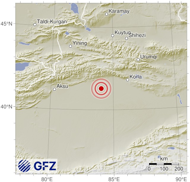 - 02:16 แผ่นดินไหวขนาด 4.6 (mb) ลึก 10 กม.พิกัด 84.04°E 41.29°N มณฑลซินเจียง ประเทศจีน