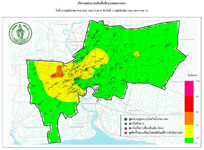 - 07:00 แผนที่แสดงปริมาณฝนในกรุงเทพฯย้อนหลัง 24 ชั่วโมงจากศูนย์ป้องกันน้ำท่วม กทม