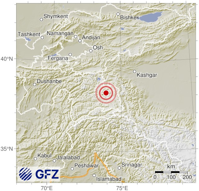 - 02:08 แผ่นดินไหวขนาด 4.8 (mb) ลึก 123 กม.พิกัด 73.93°E 38.27°N ใกล้ จังหวัดกอร์โน บาดาค์ชาน ออโตโนมัส ประเทศทาจิกิสถาน