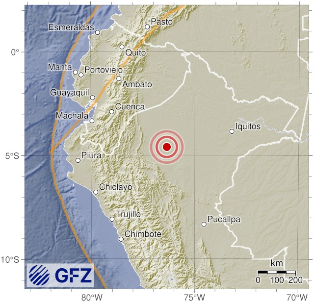 - 13:43 แผ่นดินไหวขนาด 4.9 (mb) ลึก 128 กม.พิกัด 76.35°W 4.61°S ประเทศเปรู