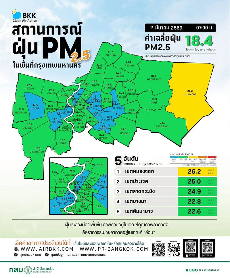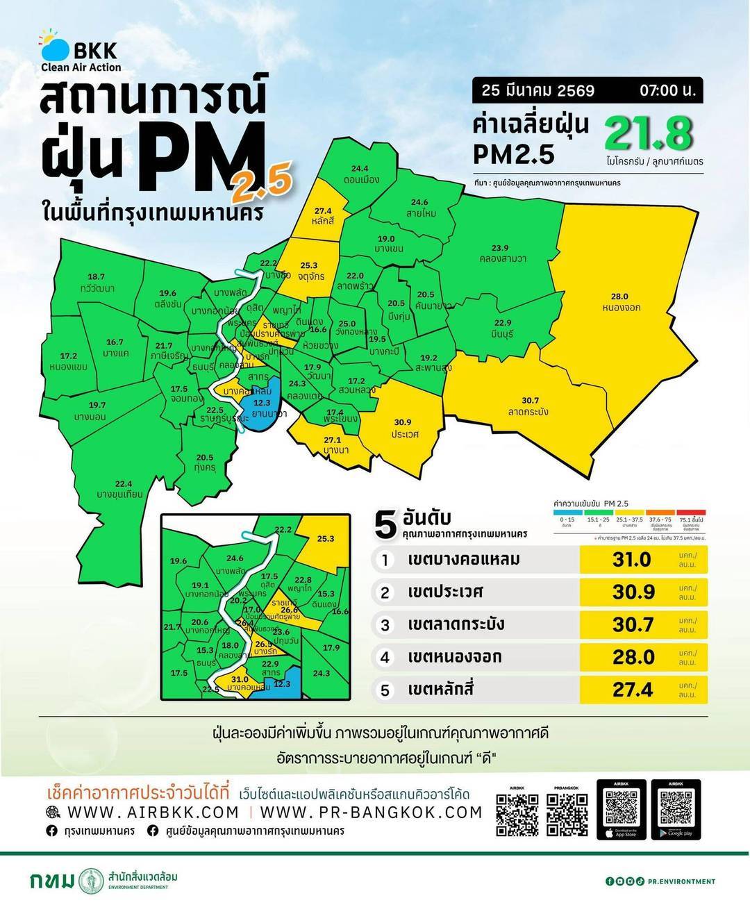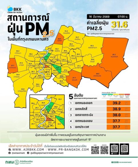 - 07:00 สถานการณ์ฝุ่น PM 2.5 ในกรุงเทพฯ