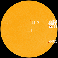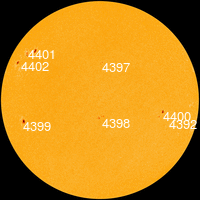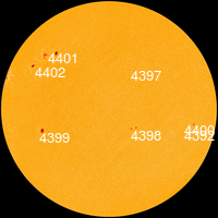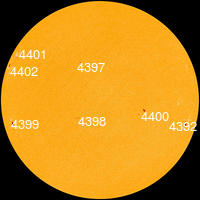 - จำนวน พิกัดตำแหน่ง ขนาด และหมายเลข ของจุดมืด ซึ่งเป็นจุดปฏิกิริยาบนดวงอาทิตย์วันนี้