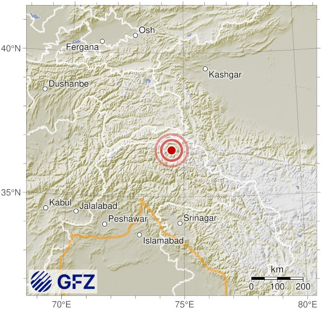 - 13:21 แผ่นดินไหวขนาด 5.9 (mb) ลึก 10 กม.พิกัด 74.47°E 36.62°N แถบเทือกเขาทางตะวันตกเฉียงเหนือของแคว้นแคชเมียร์