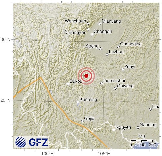 - 18:32 แผ่นดินไหวขนาด 5.2 (Mw) ลึก 10 กม.พิกัด 103.45°E 27.16°N มณฑลยูนนาน ประเทศจีน