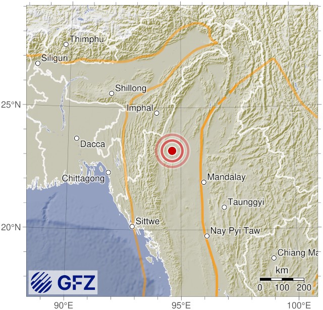 - 07:08 แผ่นดินไหวขนาด 4.8 (mb) ลึก 85 กม.พิกัด 94.61°E 23.24°N ประเทศเมียนมาร์